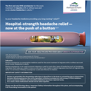 Brekiya autoinjector is indicated for the acute treatment of migraine with or without aura and the acute treatment of cluster headaches in adults.