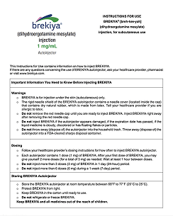 - Who have hypersensitivity to dihydroergotamine, ergot alkaloids, latex, or any of the ingredients in Brekiya autoinjector.